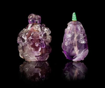 Two Carved Amethyst Snuff Bottles