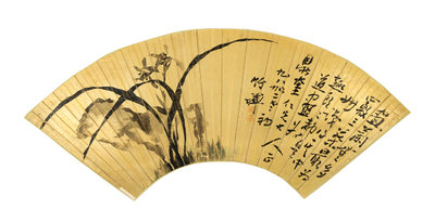 ink and color on gold paper, fan leaf