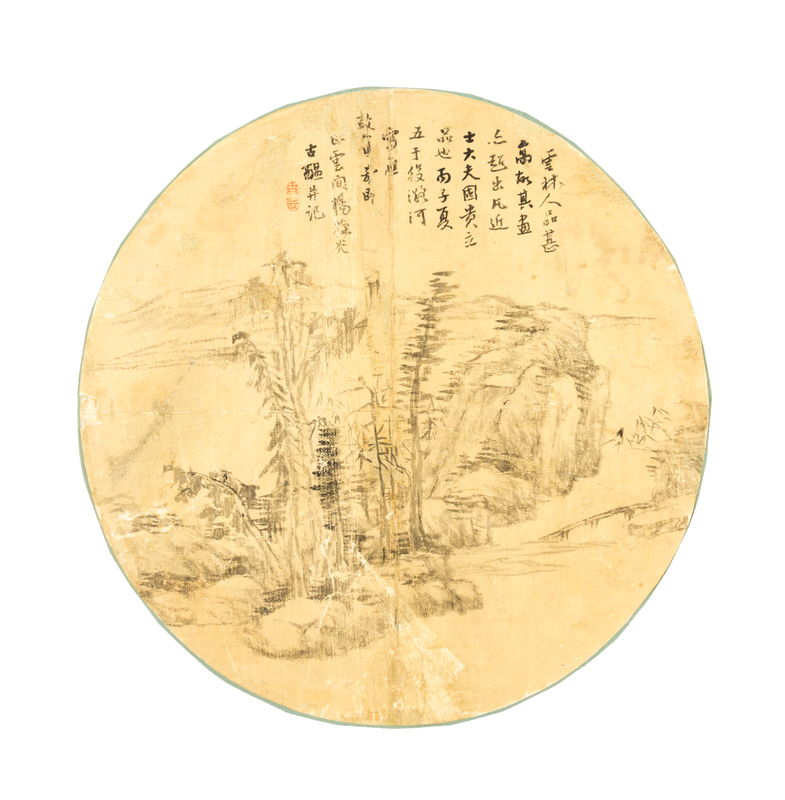ink on silk, round fan leaf