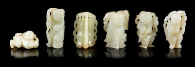 Six Celadon Jade Figures