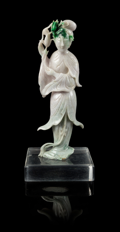 A Lavender and Green Jadeite Figure of a Beauty