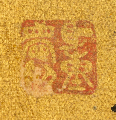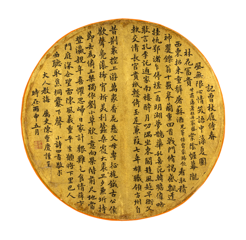 ink on gold paper, round fan leaf