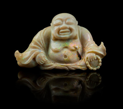 A Carved Opal Figure of Laughing Buddha, Mille
