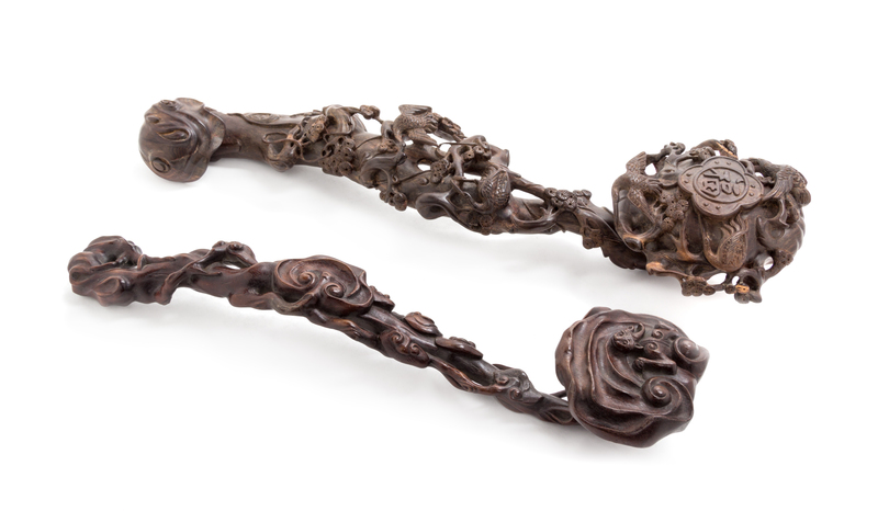Two Carved Hardwood Ruyi Scepters