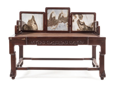 A Large Chinese Marble Inset Hardwood Settee
