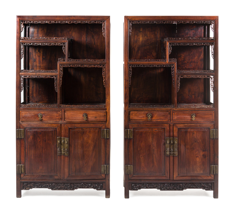 A Pair of Chinese Hardwood Displaying Cabinets