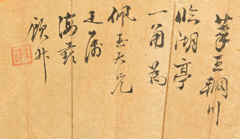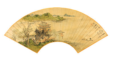 ink and color on gold paper, fan leaf