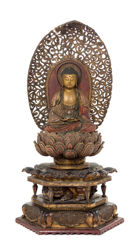 A Git and Polychrome Painted Wood Figure of Buddha