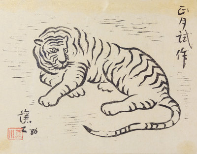 signed with one artist's seal, dated 1986, framed.