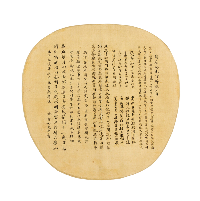ink on silk, round fan leaf