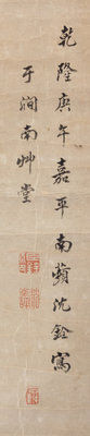 signed Nanping Shen Quan, dated Qianlong gengwu (1750), three artist's seals, chen Quan yin, Shen Nanping, shi geng and one other seal.