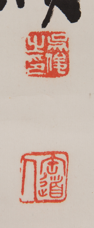 signed Wu Changshuo, three artist's seals, xiao gu lu, Wu Jun zhi yin, bu dao ren.