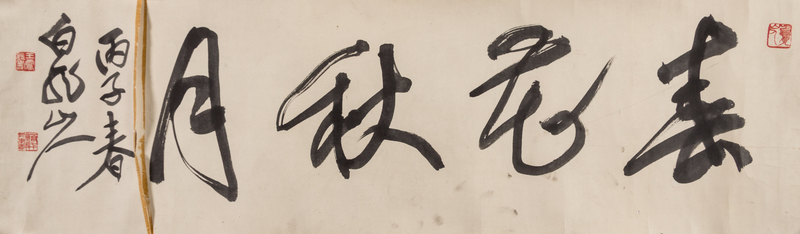 signed Bailong shanren, dated bingzi (1876), spring, three artist's seals, Yiting qishi sui hou suo shu, Wang Zhen chang shou, Bailong shanren.