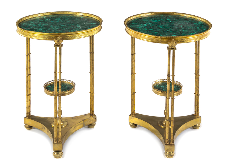 A Pair of Neoclassical Gilt Bronze and Malachite Gueridons