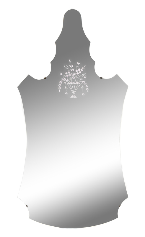 the shaped mirror plate with etched decoration depicting a flowering urn.