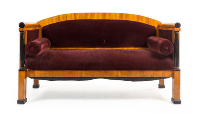 A Biedermeier Parcel Ebonized Birch Sofa
