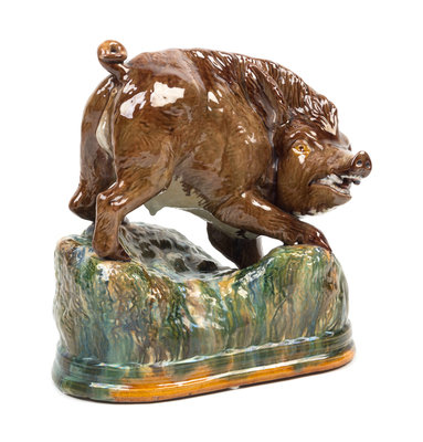 A Portuguese Majolica Figure of a Wild Boar