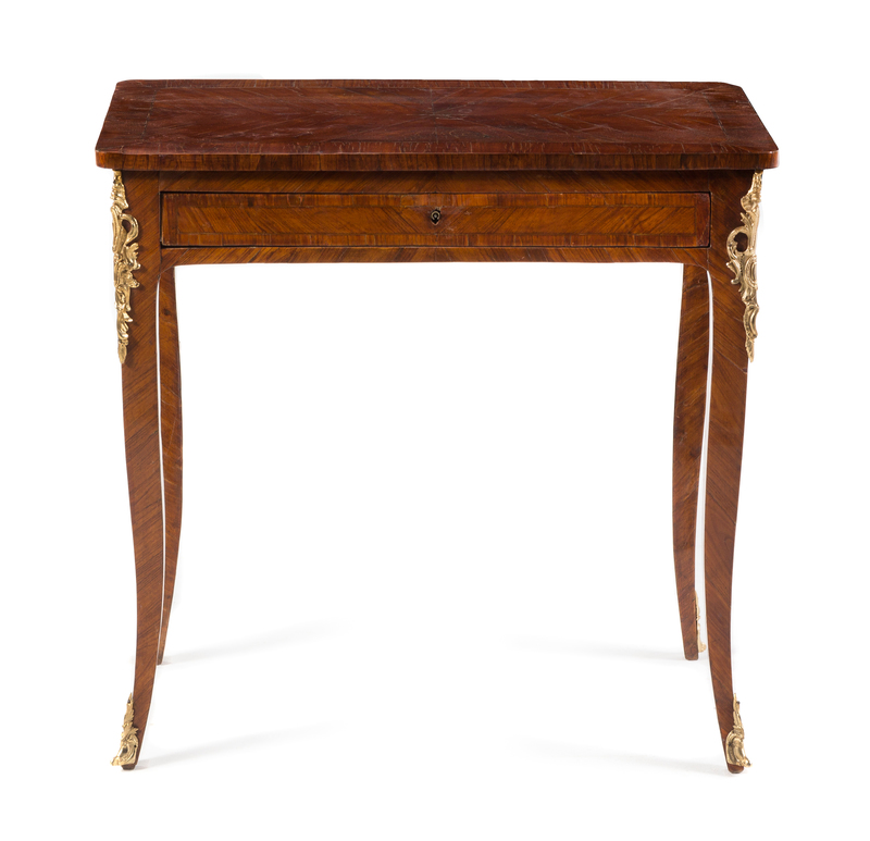 A Louis XV Style Gilt Metal Mounted Tulipwood Side Table