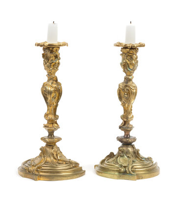 A Pair of Louis XV Style Gilt Bronze Candlesticks