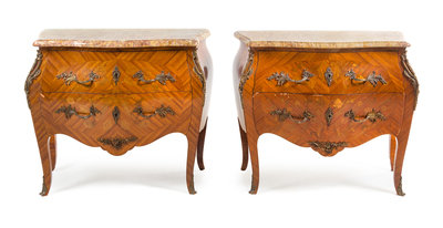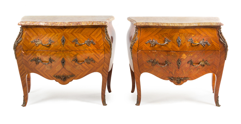 A Pair of Louis XV Style Marquetry Commodes
