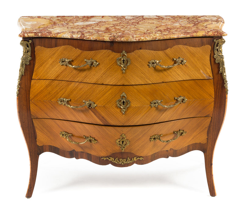 A Louis XV Style Bookmatch Veneered Commode