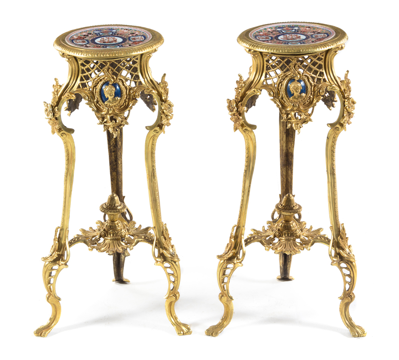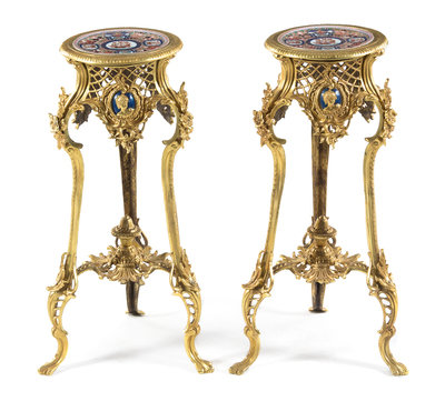 A Pair of Louis XV Style Gilt Bronze and Porcelain Inset Pedestals