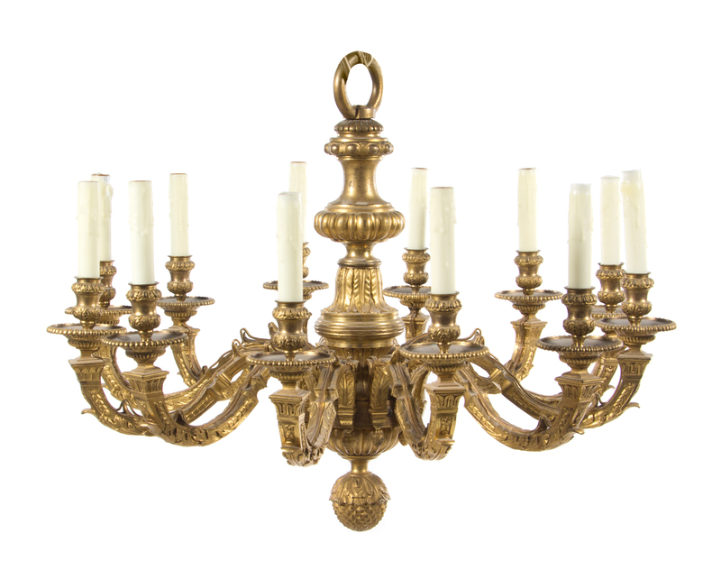 A Louis XVI Style Gilt Bronze Twelve-Light Chandelier