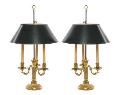 A Pair of Louis XVI Style Gilt Bronze Bouillotte Lamps