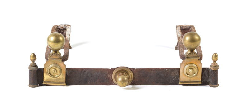 having ball and acorn finials, with incorporated andirons.