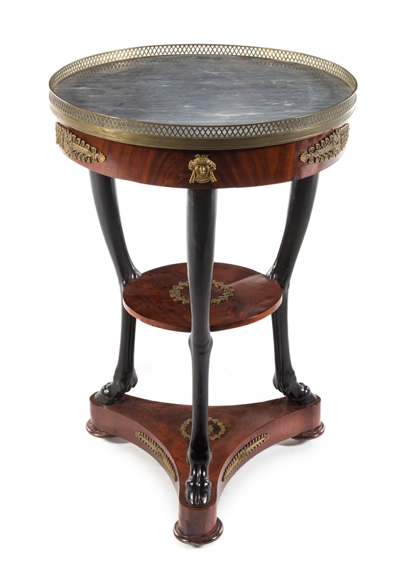 An Empire Gilt Bronze Mounted Parcel Ebonized Gueridon