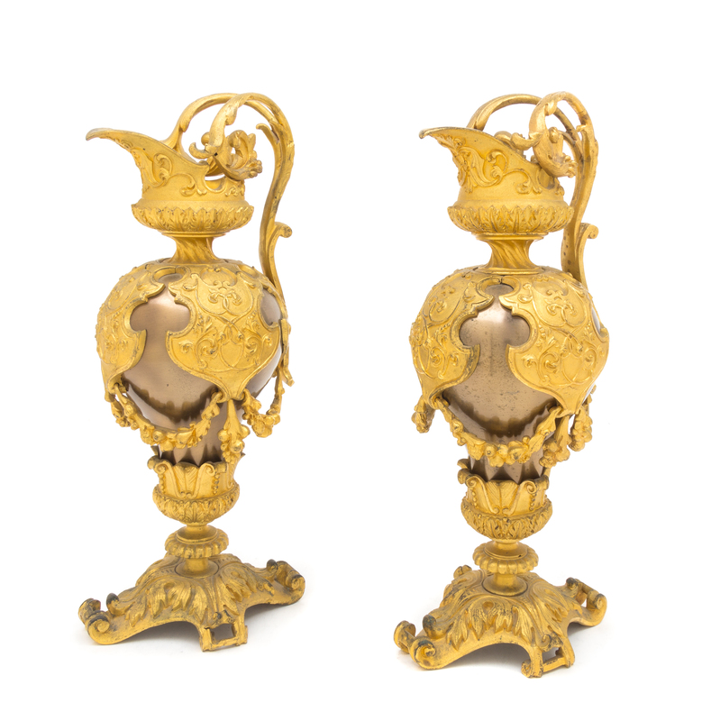 A Pair of Louis Philippe Style Gilt Bronze Mounted Ewers