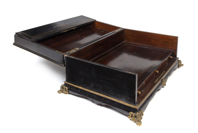A Napoleon III Brass Inlaid Ebonized Writing Box