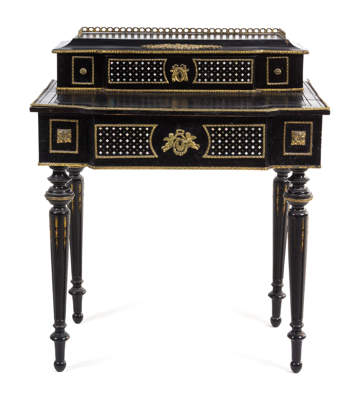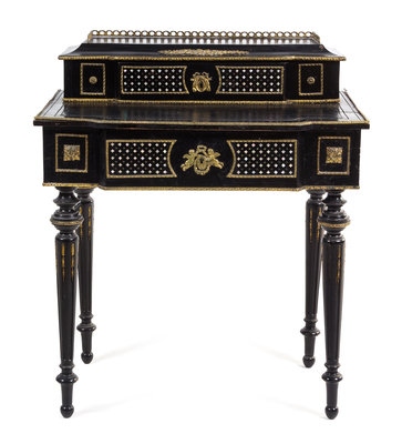 A Napoleon III Mother-of-Pearl Inlaid Ebonized Desk