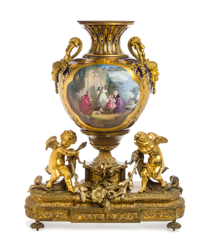 A Sevres Style Gilt Bronze Mounted Porcelain Urn