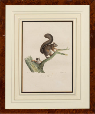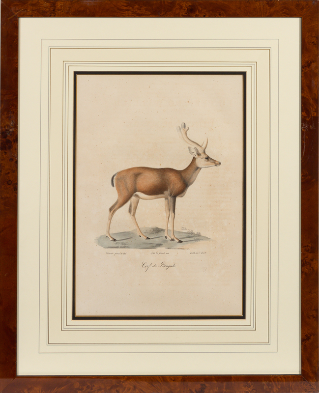 depicting various species of mammals, matted and framed uniformly.
