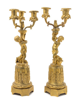 A Pair of French Gilt Bronze Three-Light Candelabra