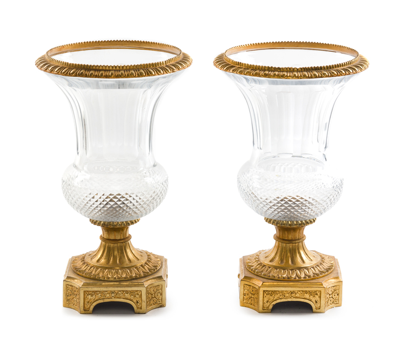 A Pair of Gilt Bronze Mounted Cut Glass Urns