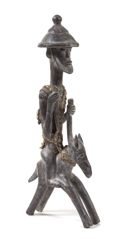 depicting a horse and rider, with applied cowrie shells.