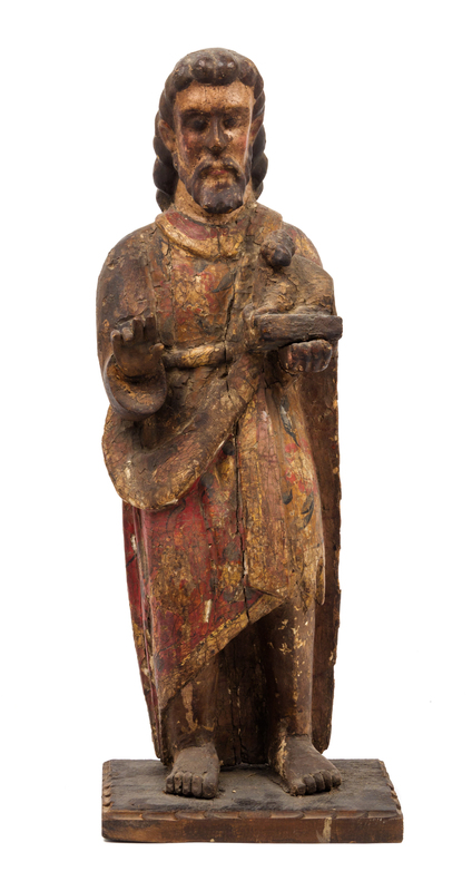 A Mexican Painted and Carved Wood Figure of Saint John the Baptist