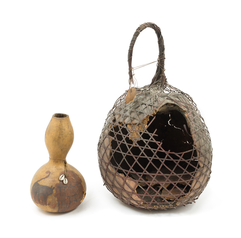 having rattan netting, together with a Sudanese gourd vessel.