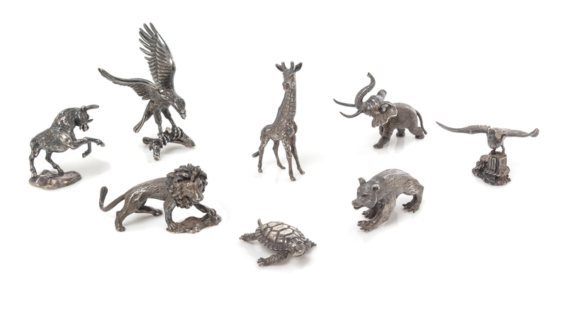 A Group of Eight French Silver Miniature Animal Figures
