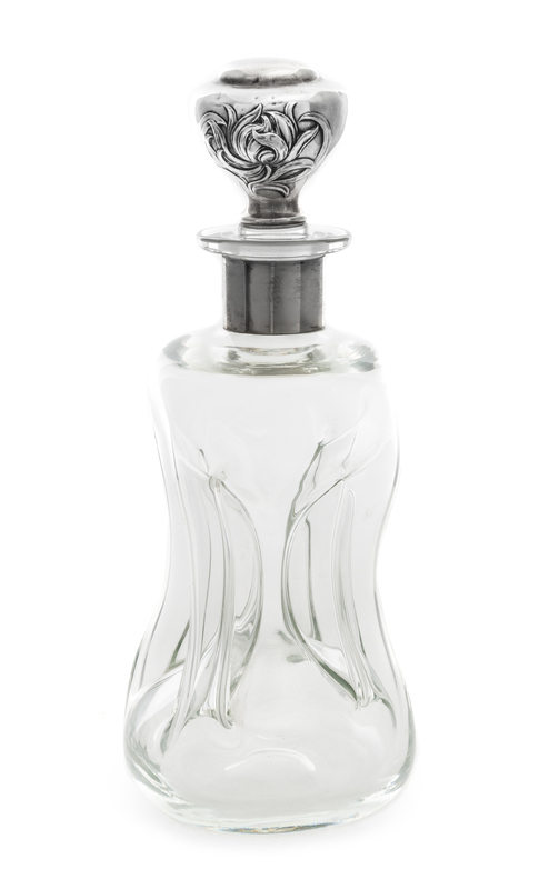 the stopper in the Art Nouveau taste over the pinched glass body.