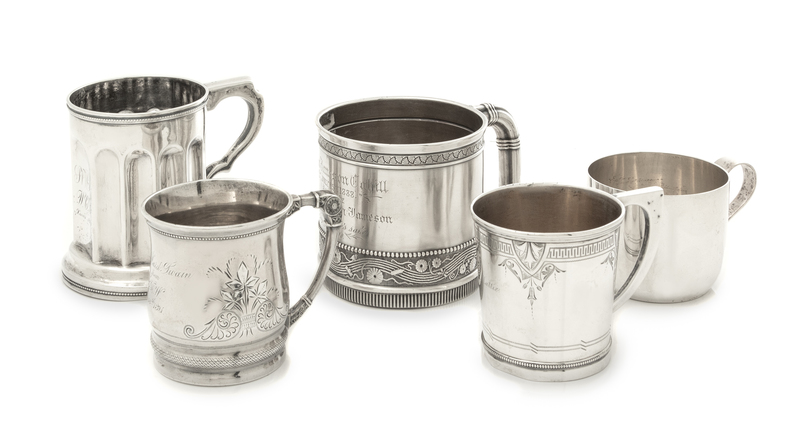 A Collection of Five American Silver Children's Mugs