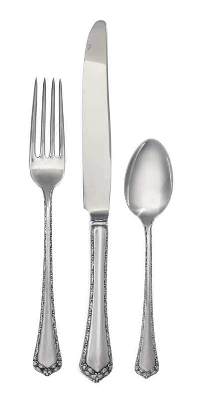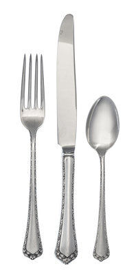 Rosemary pattern, comprising:7 dinner knives7 dinner forks7 teaspoons7 soup spoons2 table spoons1 sauce ladle1 jelly spoon1 serving fork1 olive fork