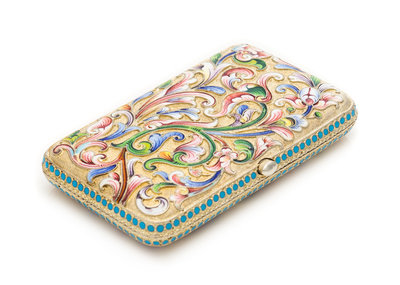 A Russian Silver-Gilt and Enameled Cigarette Case