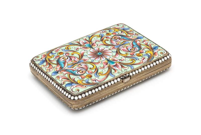 A Russian Enameled Silver Cigarette Case