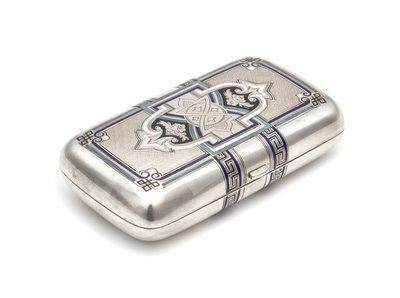 A Russian Silver and Enameled Cigarette Case