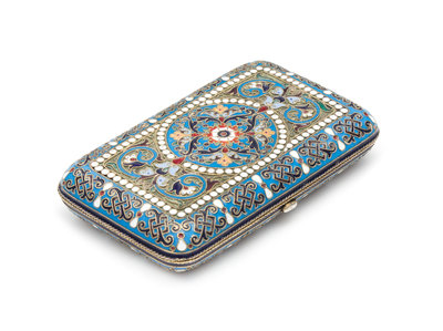 A Russian Enameled Silver Cigarette Case