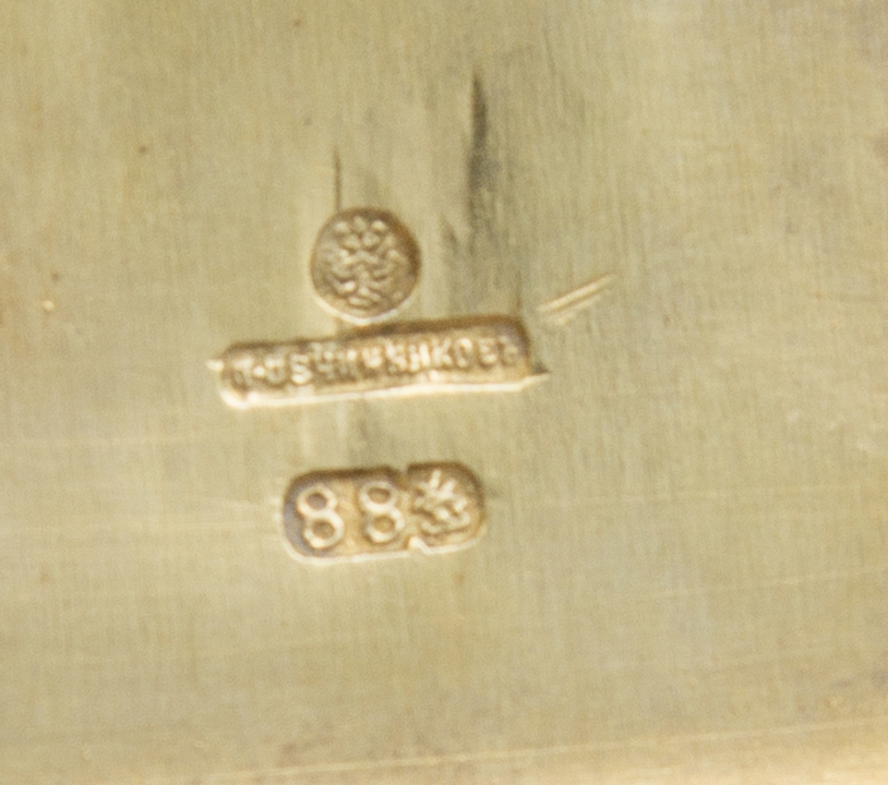 Mark of Pavel Ovchinnikov with an Imperial Warrant, Assay of Vasily Petrov, Moscow, 1884