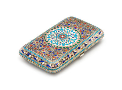 A Russian Enameled Silver Cigarette Case